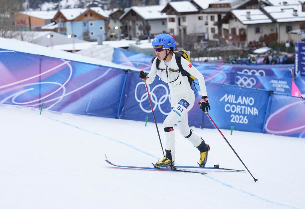2026年2月21日,次旦玉珍在米兰-科尔蒂纳冬奥会滑雪登山混合接力比赛中。新华社记者 胡虎虎 摄
