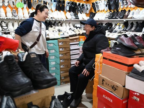 “这一趟把全家五口人的新衣裳都置办了,一共花了不到一千块钱。”赵国胜不时和老板交流下一步该买什么。他告诉记者,虽然村里不少人学会了网购,但他还是习惯来恒昌,“摸得着面料,看得见厚薄,心里踏实。”