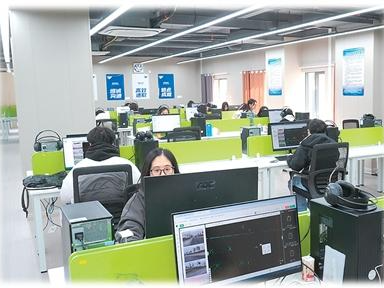 企业员工接受“人工智能训练师”培训。
